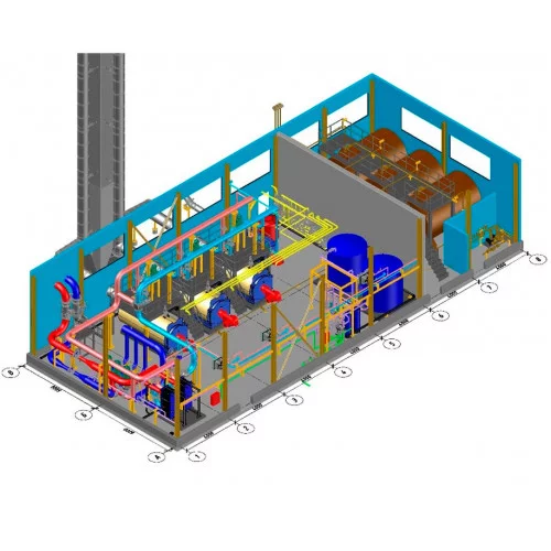 Блочно-модульные котельные могут состоять как из одного блок-модуля, так и из нескольких, количество блоков определяется необходимым пространством для размещения котлов и вспомогательного оборудования.В блоках где устанавливаются котлы так же располагаются узлы топливоснабжения, обеспечивающие подачу топлива на горелки.В дополнительных блоках может быть установлены: Группа сетевых насосов; Узел горячего водоснабжения (ГВС); Система водоподготовки; Система дизельного топливоснабжения с расходным резервуаром; Дизельный генератор аварийного электроснабжения; Помещения оператора.Конструкция блочно-модульной котельной изготовляется с учетом требований для обеспечения перевозки котельной на место монтажа, блоки котельной имеют габаритные размеры пригодные для транспортировки как автомобильным, так и Ж/Д транспортом.Модульные котельные используются для: Отопления и горячего водоснабжения здания или группы зданий; Обеспечения технологических процессов на промышленных предприятиях; Обеспечения технологических процессов требующих пар.В качестве топлива может использоваться природный газ, дизельное топливо, сжиженный газ, мазут, сырая нефть, отработанные масла.Плюсы котельных блочно-модульного исполнения: Полная заводская готовность котельной, заказчик получает котельную полностью готовую к эксплуатации; Простота, удобство и короткие сроки монтажа котельной; Автономность котельной и отсутствие обслуживающего персонала.Этапы от изготовления до запуска котельной: Изготовление котельной в заводских условиях согласно технического задания от заказчика; Доставка котельной на объект заказчика, при необходимости оформляется разрешение на перевозку крупногабаритных грузов; Установка блок-модулей котельной на заранее подготовленные фундаменты; Установка дымовой трубы котельной; Состыковка блоков и внутреннего технологического оборудования; Подключение котельной к подведённым инженерным сетям; Пуско-наладочные работы с проверкой работоспособности всех систем.