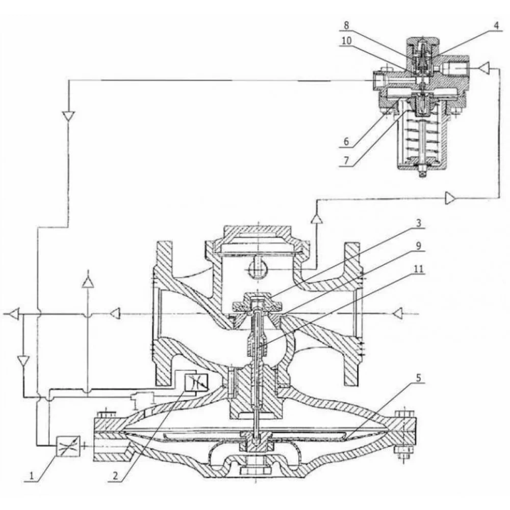 Состав основного комплекта Наименование детали Номер позиции Мембрана рабочая 5 Мембрана стабилизатора 6 Пружина стабилизатора 7 Пружина клапана стабилизатора 8 Перечень дополнительных деталей Наименование детали Номер позиции Дроссель регулятора 1 Дроссель регулятора 2 Клапан рабочий 3 Клапан стабилизатора 4 Седло регулятора 25;35 мм 9 Седло стабилизатора 10 Шток клапана рабочего 11